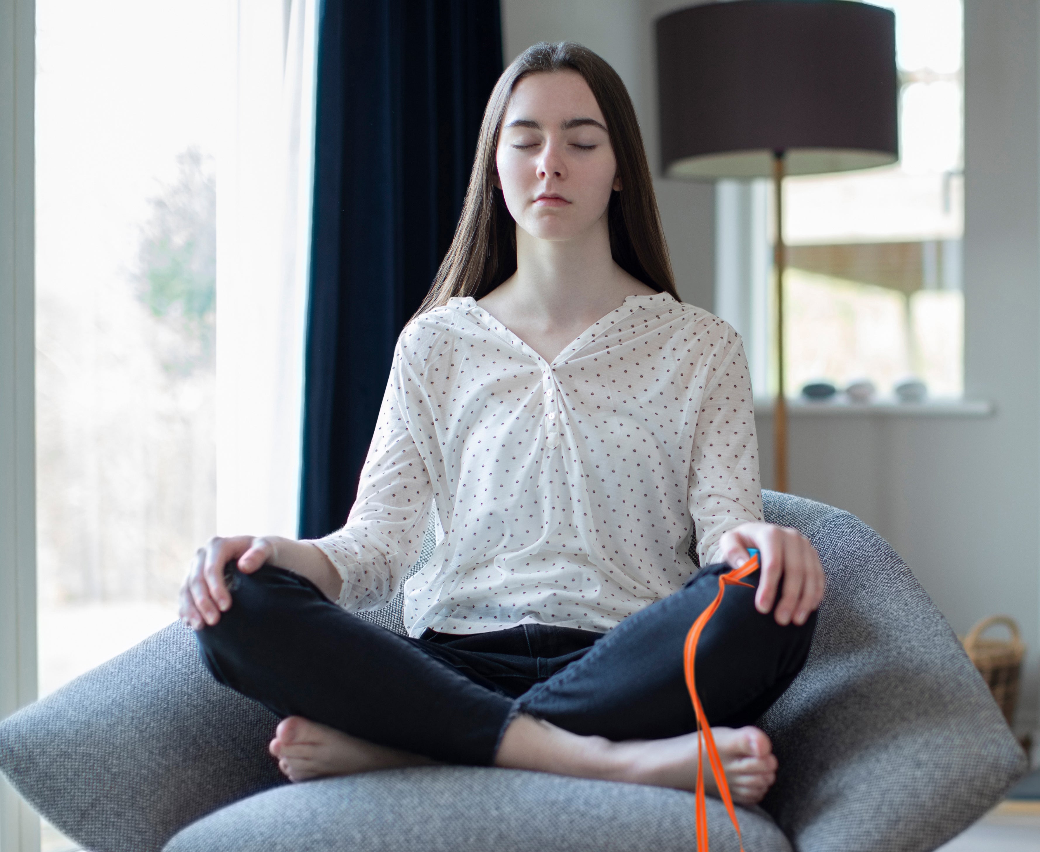 Sit in a chair or on the floor. It's easier to breathe if you sit upright, but you can also lie down. You can either close your eyes or keep them open. Many people prefer to relax their eyes by keeping them half-closed. It is important that you are comfortable in your space.